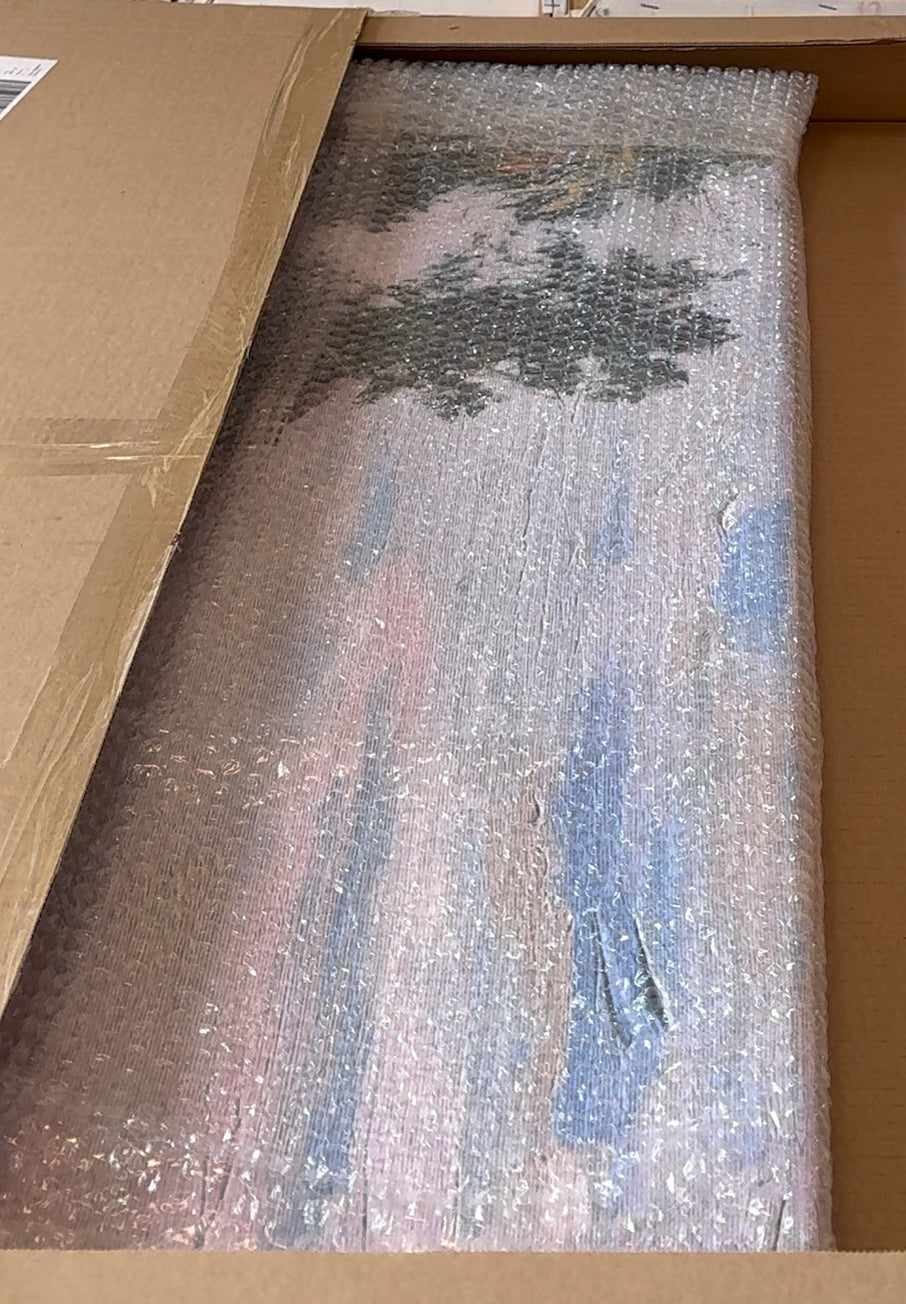 Your artwork is carefully packaged in our custom-designed packaging to ensure safe transit and minimize the risk of damage upon delivery (see video).