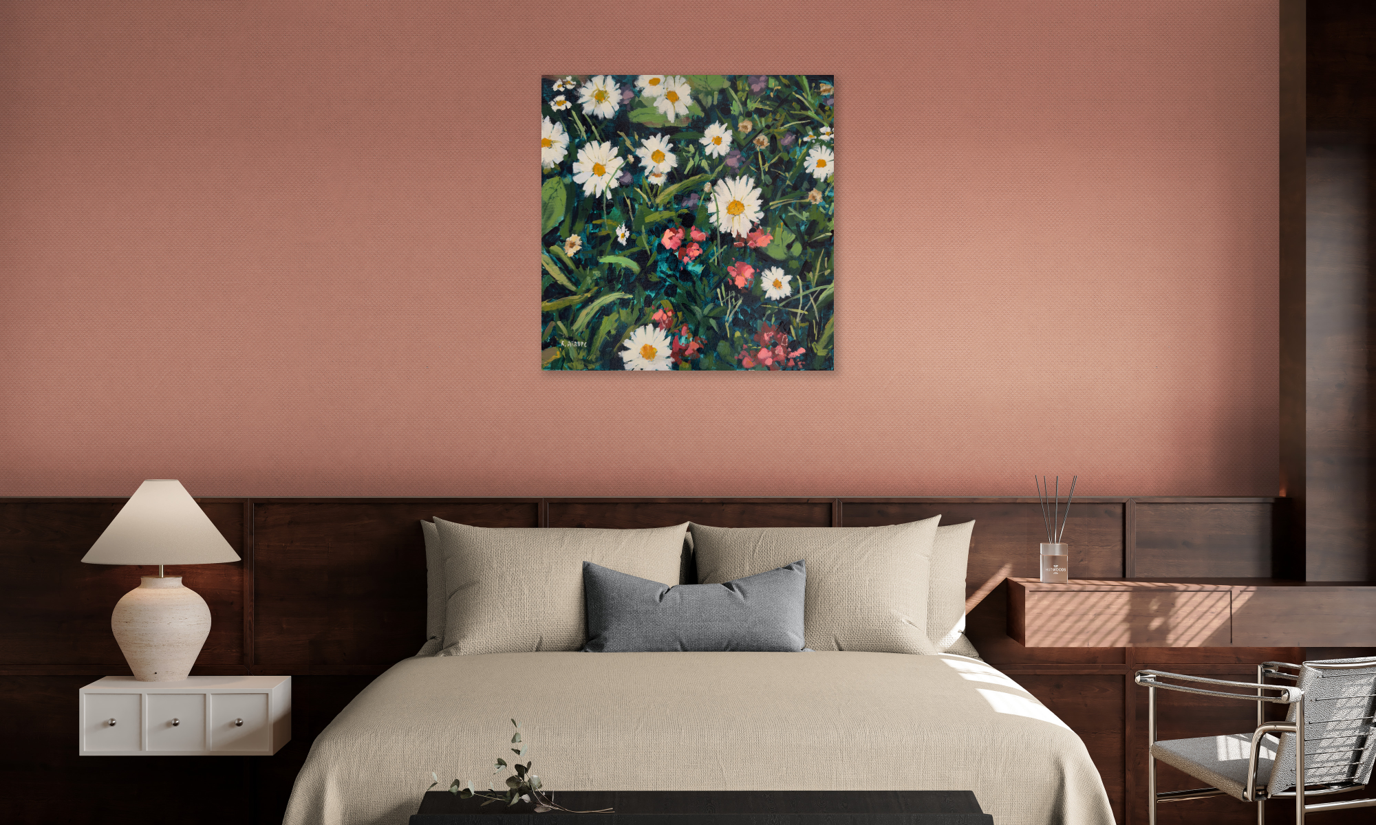 See how my artworks can change the whole room by using the before/after image comparison.